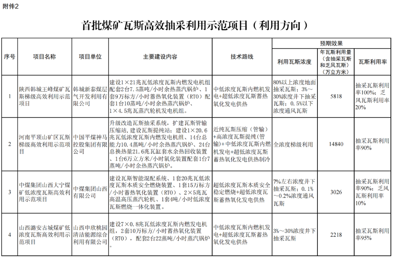 2.首批煤礦瓦斯高效抽采利用示范項目(利用方向)